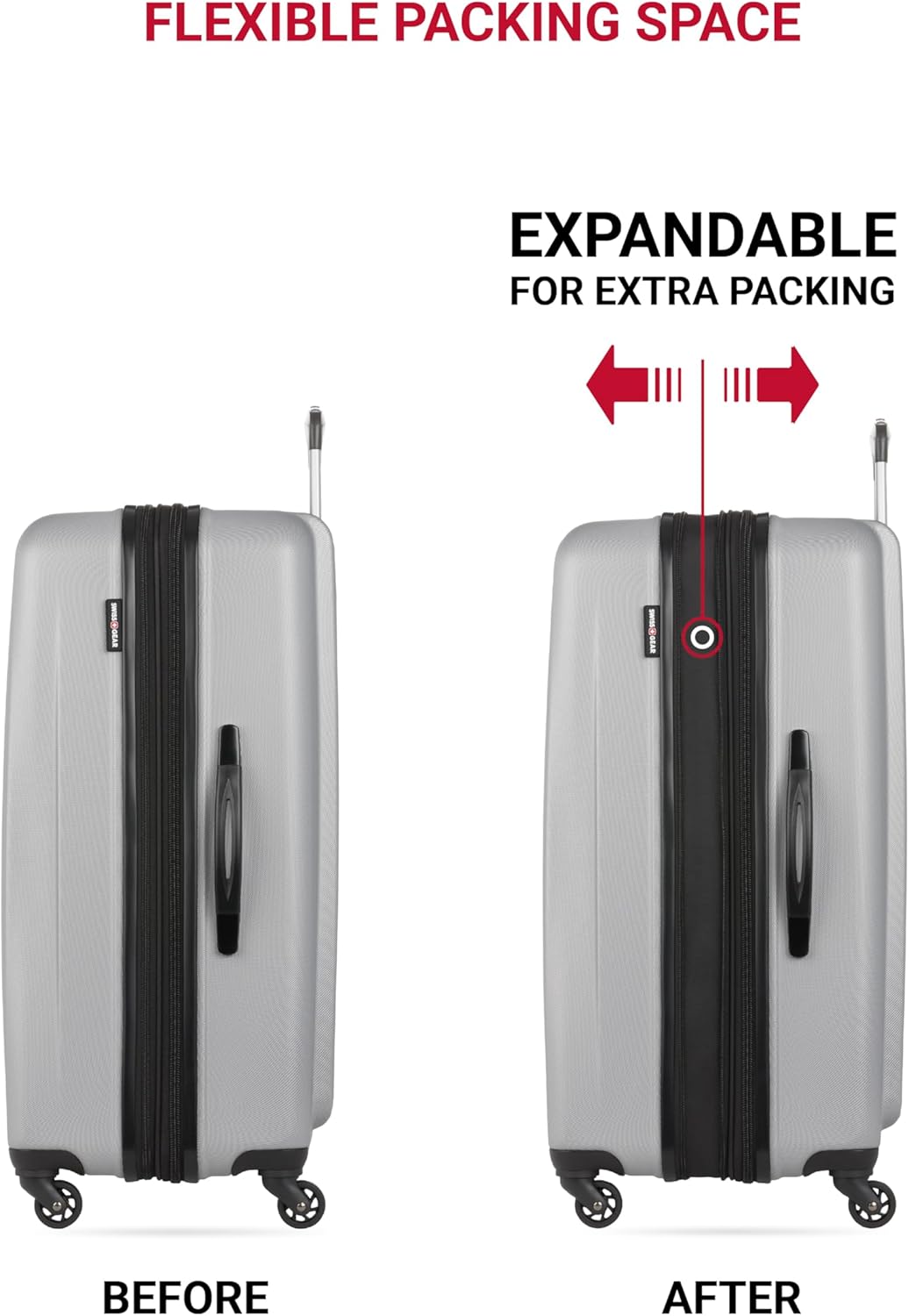 Looking for a large suitcase that can take whatever you throw at it? This is the one you’ve been searching for. Part of our SWISSGEAR Chrome Collection Expandable Hardside Luggage 3-Piece Set, this luggage packs a lot of features in one suitcase. Expandable and full of organizational space, it is also lightweight so that you can pack more. The materials used in its conception are durable, made to resist all conditions and are backed by our 10-year limited warranty. It also has a ton of organizational features such as elastic tie-down straps, a split-case design and a privacy inner zippered pocket giving you all the space you need to pack your things and keep them in place. It is also ergonomically designed to make it easier for you to carry everything. From 360 degrees smooth spinner wheels to retractable push button locking handle and side feet for extra stability, this suitcase is exactly what you are looking for.